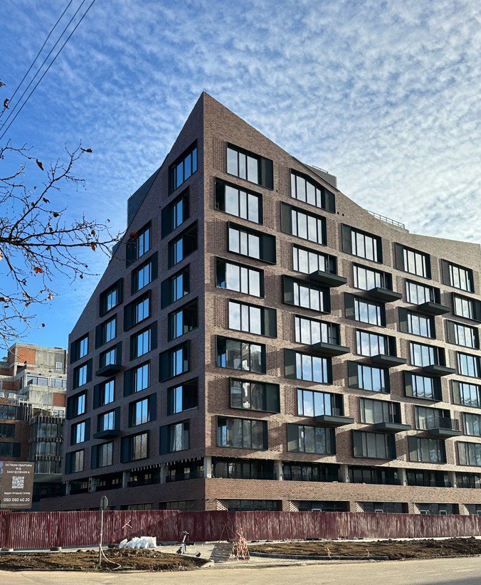- Завершается отделка фасада верхних этажей клинкером.