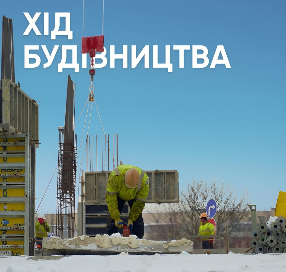 - У 3–4 секціях активно ведуться роботи з армування та бетонування вертикальних конструкцій цокольного поверху.